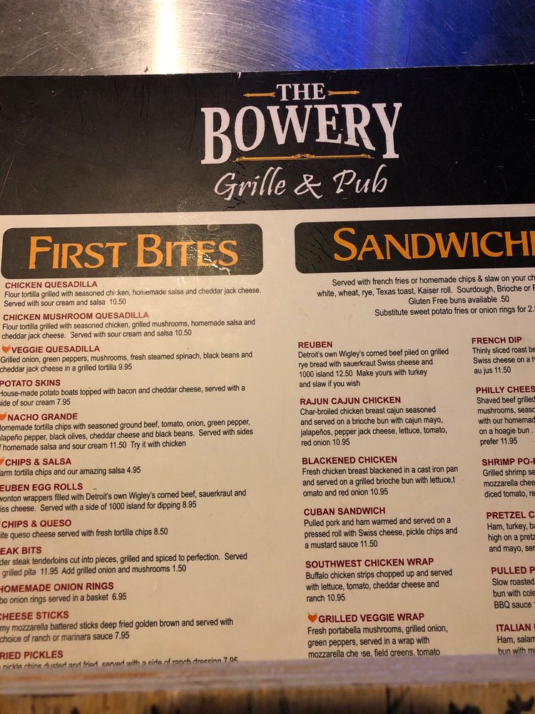 Welcome to The Bowery Grille & Pub, a culinary gem situated in Canton, MI. This New American eatery captivates diners with a diverse and exciting menu that showcases comfort food with a twist. Dive into their Reuben Sandwich, where Detroit’s own Wigley’s corned beef marries perfectly with grilled rye, sauerkraut, and Swiss cheese, or opt for the spicy Rajun Cajun Chicken Sandwich for a bold flavor experience.